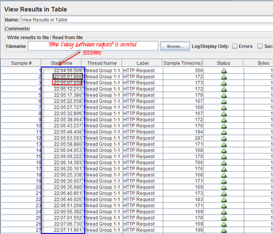 - 每个用户请求之间的**延迟**为**5000**毫秒