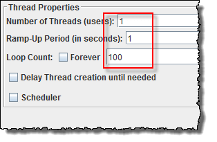 此设置使 JMeter 对 http://www.google.com 发送**100**次**一个**用户请求