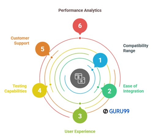 在 Guru99,我们致力于提供准确、相关和客观的可靠、高质量信息。经过 80 多个小时对 26 多个跨浏览器测试工具的全面审查,我们创建了这份综合指南,旨在帮助用户找到可靠的解决方案,确保网站 在不同浏览器和设备上保持一致的性能。我们根据实时渲染准确性、定价、功能和整体用户满意度评估了每个工具。为了满足不同的需求,我们包含了免费和付费选项。我们的编辑流程确保了 透明度和信任。我们在审查工具时主要关注以下因素:功能性、性能、适应性和长期价值。