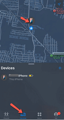步骤 3)共享位置后,您将看到一部 iPhone 已共享其位置。如果您是家庭群组的一员,您将能够立即在“人物”选项卡中找到设备。此外,转到“设备”选项也将帮助您定位已链接的设备。