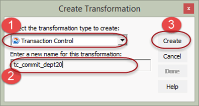 步骤 3) 创建事务控制转换,然后单击完成按钮。