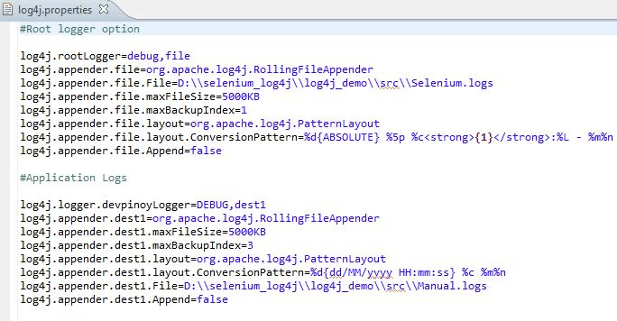 log4j.appender.file.File=D:\\Guru99\\src\\Selenium.logs