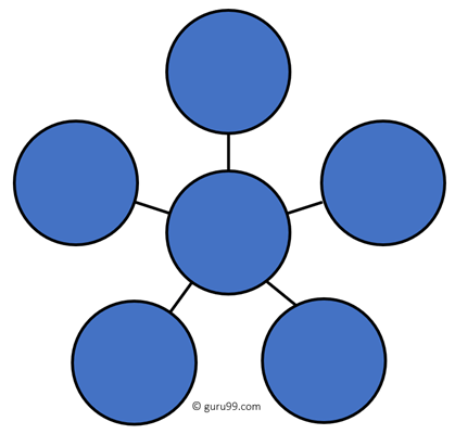 在星形拓扑中,所有计算机都通过集线器连接。这根电缆称为中心节点,所有其他节点都通过此中心节点连接。它在局域网中最受欢迎,因为它们价格便宜且易于安装。