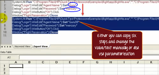 - 数据驱动的使用允许我们为各种输入框使用相同的数据。(数据驱动是 HP UFT 提供的一项功能,它在一个窗口中显示所有可以参数化的常量。它使大型脚本的参数化变得容易。