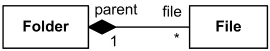 组合聚合被描述为在聚合(整体)端带有实心黑色菱形的二元关联。