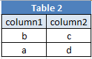 SELECT `column1`,` column1` FROM `table1` UNION ALL SELECT ` column1`,` column1` FROM `table2`;
