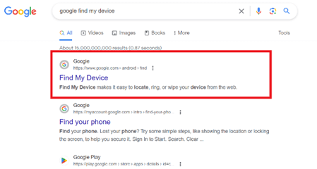 谷歌为所有基于 Android 的设备提供“查找我的设备”服务。此产品的主要功能是从任何地方定位设备。但它也允许您轻松绕过手机的密码、PIN 码和图案锁定。