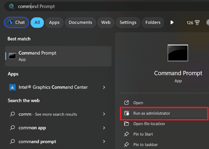 第 2 步)从开始菜单以管理员身份运行命令提示符程序。