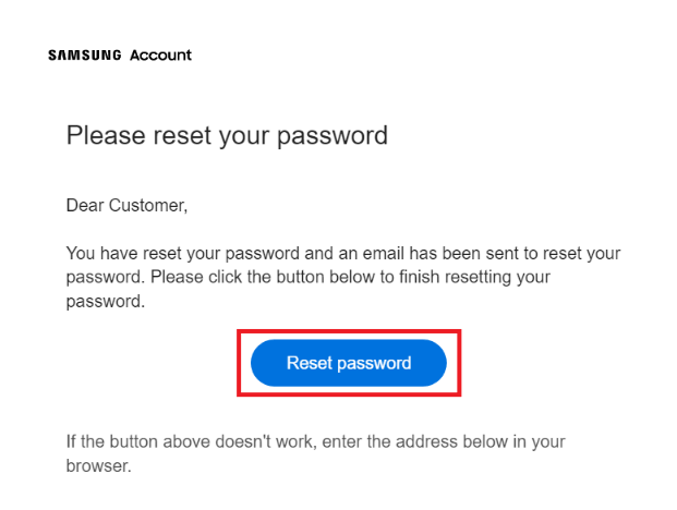 第 4 步)点击“重置密码”按钮并设置新的三星帐户密码。