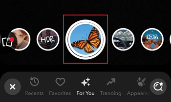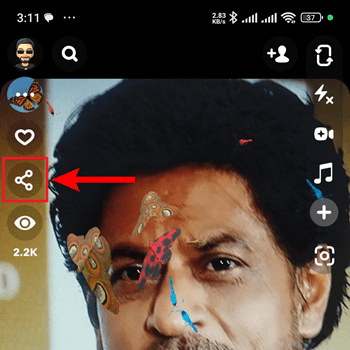 解锁“蝴蝶镜头”的另一种方法是寻找一个已经拥有它的 Snapchat 好友,然后**请他们分享**。这种方法很简单,他们只需要点击镜头窗口上的分享按钮即可。