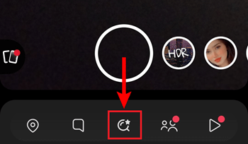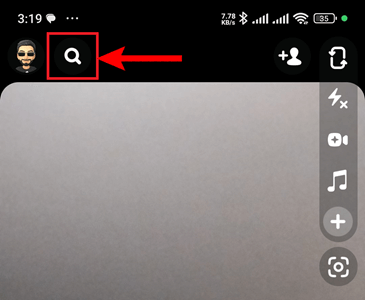 **第一步)** 进入 Snapchat 应用,点击左上角的**放大镜**。