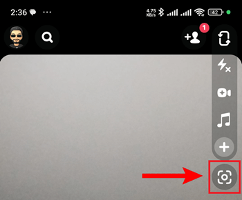 **第一步)** 启动 Snapchat 应用,并确保**后置摄像头**已打开。