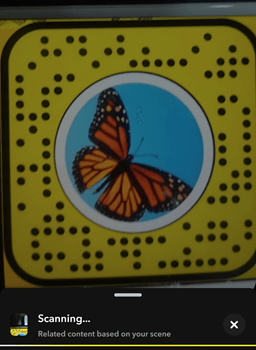 **第三步)** 选择“**蝴蝶镜头”的扫描码**,并通过拍照或录像将其永久添加到你的 Snapchat 中。