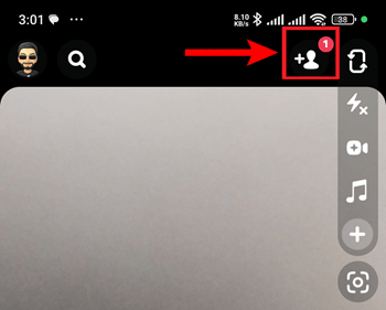 **第一步)** 点击 Snapchat 相机屏幕顶部的**添加好友**图标。