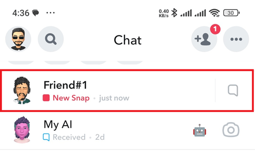 **第一步)** 点击应用程序上的**聊天图标**以访问 Snapchat 消息。