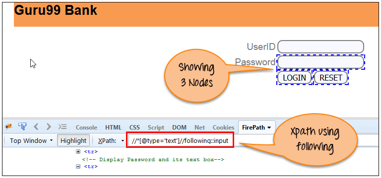 注意:您可以在此链接上练习以下 XPath 练习:https://demo.guru99.com/test/selenium-xpath.html