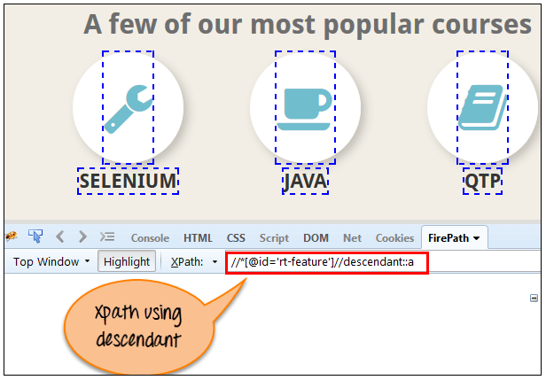 w=driver.findElement(By.xpath("//*[@id='rt-feature']//descendant::a"));