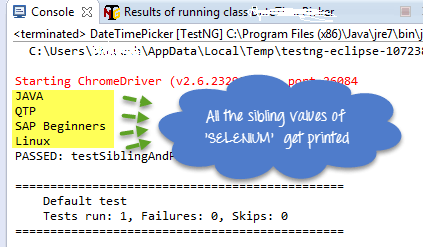//Search element inside 'Popular course' which are sibling of control 'SELENIUM' ,Here first we will find a h2 whose text is ''A few of our most popular courses' ,then we move to its parent element which is a 'div' , inside this div we will find a link whose text is 'SELENIUM' then at last we will find all of the sibling elements of this link('SELENIUM')