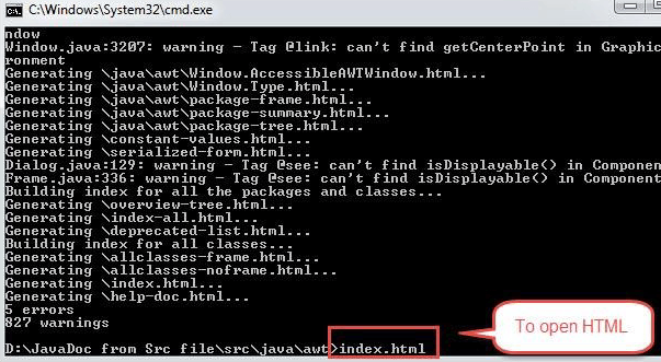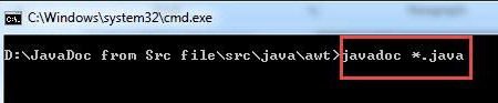 步骤 4) 在 cmd 中,将当前目录位置更改为 awt 文件夹,然后键入“javadoc *.java”,如下所示: