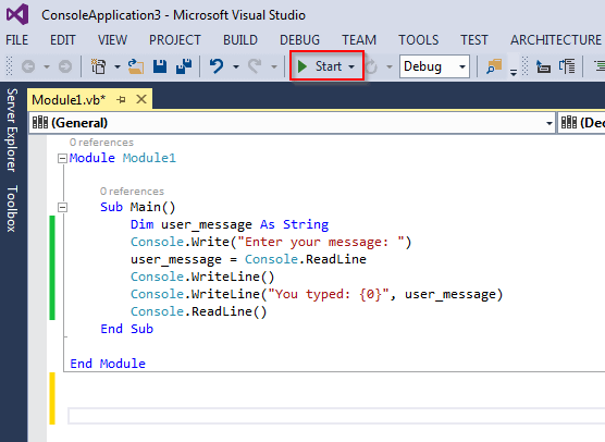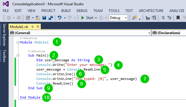 Dim user_message As String user_message = Console.ReadLine