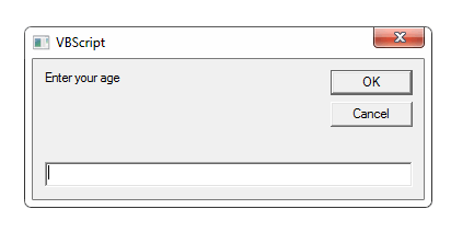 age = InputBox("Enter your age")