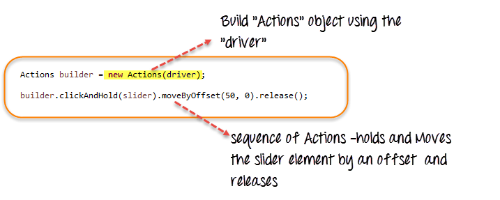我们已经了解了如何使用 API 提供的一些用户 Actions 方法——clickAndHold(element)、moveByOffset(10,0)、release()。API 提供了许多此类方法。