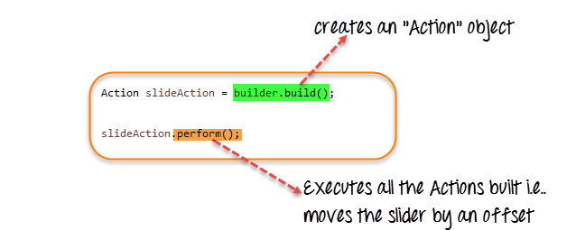 步骤 3) 使用“Actions”类的 build() 方法创建 Action 对象。调用 perform() 方法以执行 Actions 对象(此处为 builder)构建的所有操作。