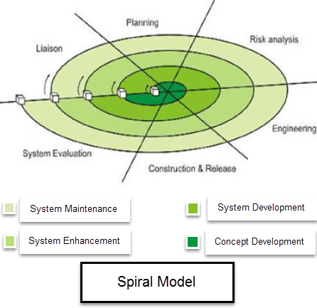 SDLC 中的螺旋模型开发过程,从一小组需求开始,然后针对这些需求通过每一个开发阶段。软件工程团队在不断增大的螺旋中为额外的需求添加功能,直到应用程序准备好进入生产阶段。下图很好地解释了螺旋模型。