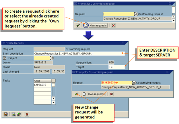Customizing Request – 包含属于“客户端特定”定制的对象。根据客户端设置,当用户执行定制设置时,这些请求会自动记录,并且目标系统会根据传输层(如果已定义)自动分配。