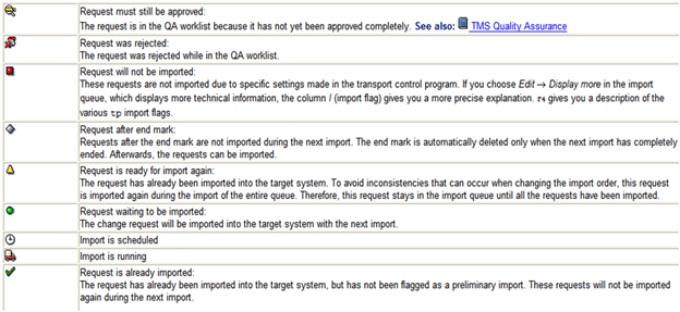 导入队列在最后一列显示一些标准的“状态图标”,以下是 SAP 定义的图标及其含义。