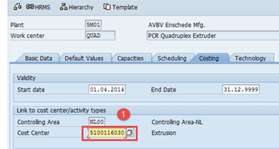 操作的成本可以在生产订单中根据工作中心输入的公式进行计算。工作中心也链接到成本中心。