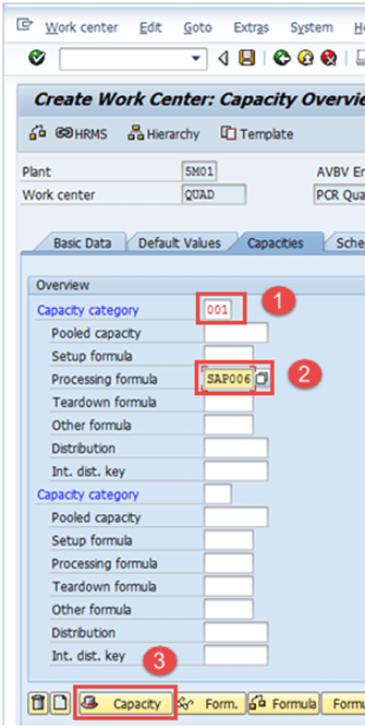 - 输入生产公式为“SAP006” – 用于计算工作中心的可用能力。