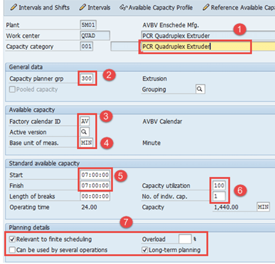 - 输入“输入能力计划组”的详细信息,该组负责机器能力。