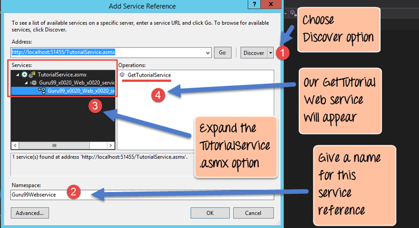 - 接下来,我们应该为我们的服务引用命名。在本例中,我们将其命名为 Guru99Webservice。