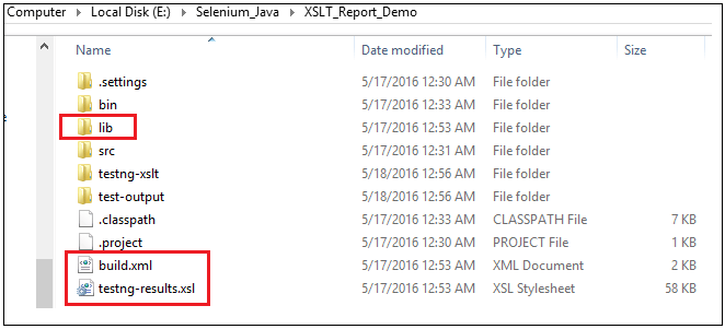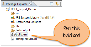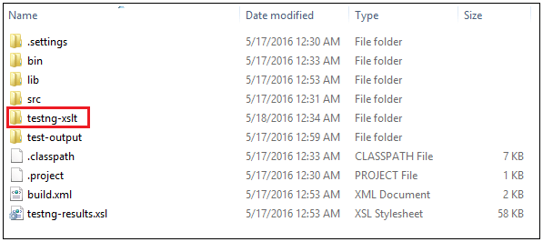 构建成功并移动到项目主目录后。您将找到 testng-xslt 文件夹。