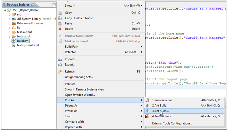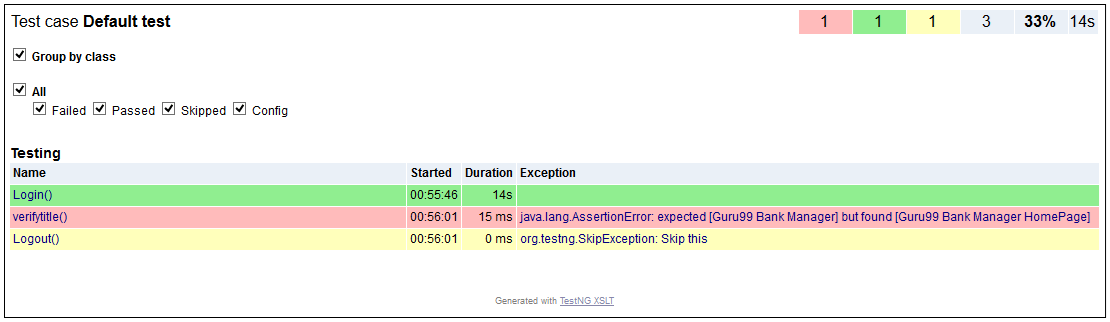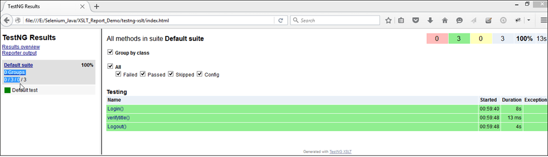 在此示例中,我们将讨论 Selenium Webdriver 中的 XSLT 报告。