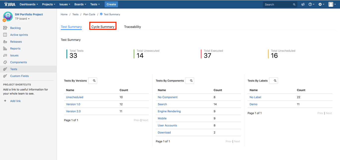 - 要创建测试周期,请在“测试摘要”页面上单击“周期摘要”选项卡。